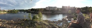 While I’ve had the great opportunity to fly over the river in the basket of a balloon (twice) and in a small helicopter (once), never before had I been near the middle of the Androscoggin River, perched high on the chunk of rock that turns into a torrent flow of wild whitewater with a high volume of water.
