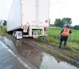 That section of Washington Street was reopened shortly before 8 a.m. Thursday. Gallon water jugs had to be removed from the trailer before it could be towed from the ditch, police said.