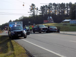 A DOT truck driven by Chad Huggins, 28, of Waterville was traveling on Routes 2 and 4 and struck the center driver’s side of Farrington’s car, McDonald said.