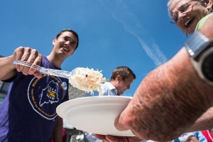 She was among the many volunteers serving food. Later, she circulated among the union members and families, talking about the need “to stand up for the right issues, and to me that means fair trade, equal pay, raising the minimum wage to something that makes it livable.”