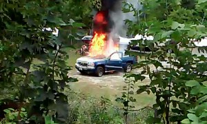 Crews first tried to put the fire out with extinguishers but eventually had to resort to a fire hose to quell the blaze, Wallace said. The truck appeared to be a total loss, Wallace said.