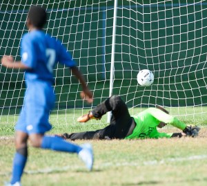 EL’s only real chance in the first half came off a corner in which Ben Steele had a shot from in front. His bid was blocked and cleared by a Lewiston defender.