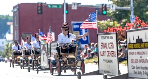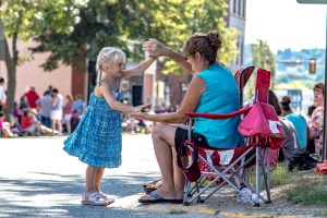 Parade units used the south side of the divided Main Street. Many groups brought lawn chairs or blankets, and the shade of trees on the grassy median strip offered a comfortable vantage point.