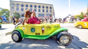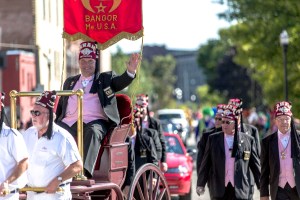 Bangor’s Anah Shrine Temple members rode stock cars, mini Indy racers and trailer trucks, as well as the fishing boats with “ports” along the mid-coast. Anah also had a Keystone Kops corps and trailer trucks. Their group of costumed cartoon favorites was a hit with youngsters, with little ones running out to hug the Minion from the recent animated movie of that name.
