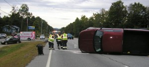 The driver of a 2000 Ford Taurus, Kimberly Farrington, 46, of Jay, received minor injuries and was taken to Franklin Memorial Hospital in Farmington by a NorthStar ambulance, Jay police Chief Richard Caton IV said.