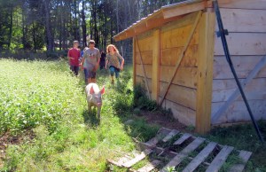 The students were given a variety of tasks to perform Friday, including weeding the garden, washing buckets, sorting garlic, picking pumpkins and filling holes on the grounds, when an unexpected task was added to the list — catching three escaped pigs.
