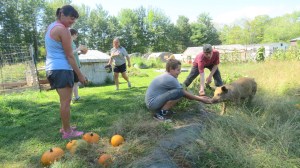 NORWAY — Combine a half-dozen middle school students, a pumpkin and garlic harvest and three runaway pigs, and you’ll find an exciting afternoon at Roberts Farm Preserve.
