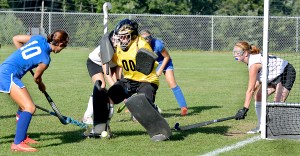 The sophomore goalie’s best — and freshman Kylie Leavitt’s topped-ball goal in the first half — helped the Saints hold on to a 1-0 field hockey win over Oak Hill in a matchup of two of top three teams in Class C South.