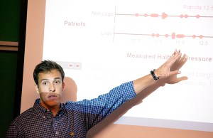 When it comes to the controversy over underinflated footballs, the Bates College alumnus can tell you a lot about things like p-values, average pressure drops, transient curves and timing variables. What he cannot tell you is whether New England Patriots quarterback Tom Brady had any clue he was handling underinflated balls in the AFC Championship, a flap now known as Deflategate.