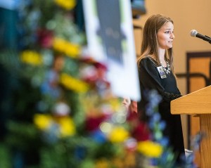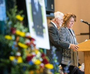 That’s putting it mildly. During the one-hour service, the mood in the school gymnasium swung between heavy sadness and hilarity as a long string of friends, classmates and colleagues shared their memories. Those memories ranged from Mike gutting a deer in front of a squeamish friend; Mike locking his little brother in the bathroom; Mike always showing up when his friends and family needed him the most.