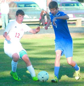 Just 28 seconds into the game, Brycson Grover headed in the first goal for Wiscasset off a Brandon Goud assist.