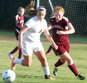 Buckfield defenseman Alexis Bennett marked Richmond top striker Kelsea Anair throughout the first half, limiting her to an assist and just one shot on goal.