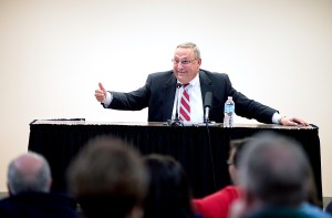 “How many years have we been below the national average for per-capita income?” LePage asked the audience. “Just look back, go backward and look; it’s been most of our lifetimes. So if you keep doing the same thing and expect different results – good luck.”