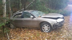 WELD — Two people were injured Wednesday afternoon when a car heading east skidded off Byron Road and into trees, Franklin County Cpl. Kevin Hartley said.