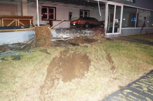 Norway Police Chief Rob Federico said police received a call from a Central Maine Power worker who was driving past the building at about 11:30 p.m. Thursday. When police arrived on the scene, they found a car had crashed into the building, likely at least a half hour to 45 minutes earlier, and caused extensive damage. The vehicle was unoccupied, and the driver was nowhere to be found.