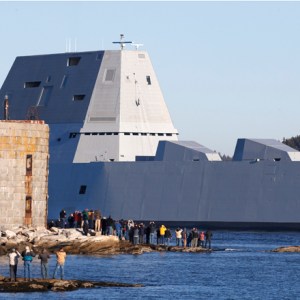 Critics say the “tumblehome” hull’s sloping shape makes it less stable than conventional hulls, but it contributes to the ship’s stealth and the Navy is confident in the design.