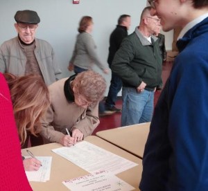 Renee Fortin also signed. “It’s a great idea,” she said. June is a good time to vote. “People get cold in the winter.” Local issues should be decided by local taxpayers, she added.