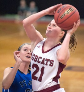 The Monks’ other post player, Emily Benway, put her team up for good by scoring St. Joe’s first four points of the second half. Cahill then scored the next five for the Monks and finished with nine in the third quarter to stake St. Joe’s to a 44-37 lead.