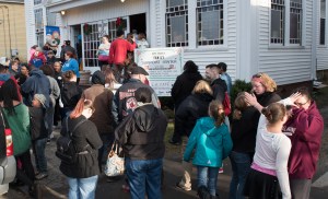 An hour-and-a-half after the doors opened, all shelves in the front were bare. No one left empty handed, Bruce Willson said.