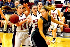 DeTroy led the Patriots with 14 points, including six in the final quarter. She was also the team’s top shooter at the free throw line, sinking six. The team as a whole shot 15-for-30 from the line. Grace Kariotis finished with 12 points, including four free throws and a crucial 3 in the fourth. Ashley Jordan added 12 while Skye Conley finished with 11.