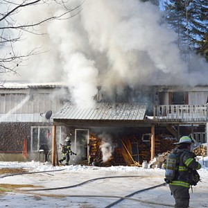 Between 30 and 35 firefighters from Strong, Farmington, Kingfield, New Vineyard, Phillips, Salem Township, Temple and Wilton responded with 14 pieces of apparatus, including tanker and squad trucks.