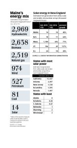 To set the solar scene, Maine has 18.6 megawatts of installed solar capacity; 33 states have more, 16 less, according to the Solar Energy Industries Association. (Within New England, everyone is ahead of Maine — Massachusetts by leaps and bounds. See graphic.)
