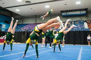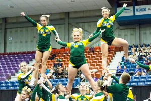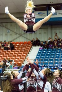 Monmouth tumbled and took to the air to land in third place, allowing the Mustangs compete in states. Like Dirigo, Monmouth had to wing it after the loss off two cheerleaders.