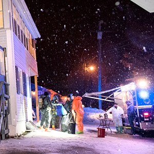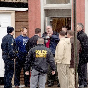 Wanda Hoppe, a first-floor tenant who has lived there since September, said the building’s alarm went off. “I opened the door to see what was going on,” she said. “One of the cops came in and told us, ‘Everybody out.'”