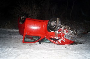 Police said the driver failed to stop at the intersection of Roundabout and North Hill Road and drove into the woods at about 9 p.m.