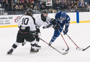 “Feels great,” Frechette said of lighting the lamp as a freshman in the rivalry. “I had my partner, Alex Robert, also a freshman. He gave a lot of good passes to me.”