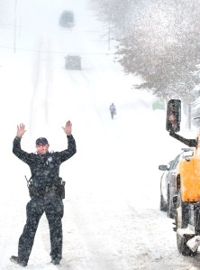 The National Weather Service in Gray said snow falling at a rate of 1-2 inches per hour made it difficult for city crews to keep the roads cleared.