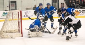 The Saints dominated the first period, outshooting the Blue Devils 13-2, but only had one goal to show for it. There was a scrum in the Blue Devils’ goal crease and Lexie Kesaris got a stick on the puck and jammed it home at the 4:51 mark.