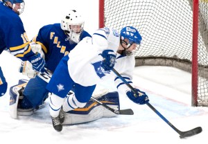 Just like in the Scarborough game the Blue Devils (13-1-1) fell behind in the first period. Robbie Armitage put the Yachtsmen (13-4) on the board on their first shot of the game, taking advantage of a loose puck in front of the net three minutes in.