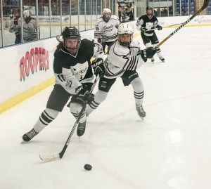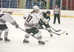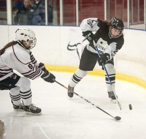 The game looked headed for overtime after Ellie Schad scored 20 seconds into the third period to tie the game up at 3-3. But the second-seeded Saints (18-2) benefited from the game’s first and only penalty with fewer than three minutes to play. Guerin called the hooking penalty against his team “interesting,” and “bizarre,” but insisted that it didn’t determine the outcome of the game.