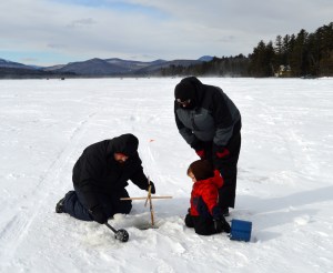 WILTON — As the wind picked up and whipped across Wilson Lake on Saturday afternoon, hardy anglers kept checking lines, hoping for a prize catch.