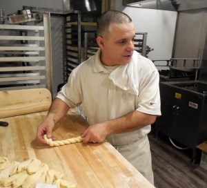 Cooper’s experience in the trade is obvious when you watch him efficiently twisting up crullers.