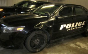 FARMINGTON — Local police are searching for a light-colored pickup truck that struck a cruiser early Thursday morning on Farmington Falls Road, Police Chief Jack Peck said.