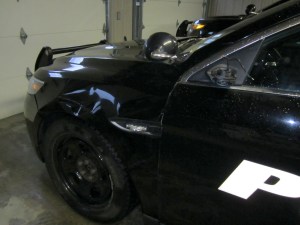 A prisoner in the back seat of the cruiser was not hurt, he said, but there was an estimated $3,000 damage to the front fender and mirror of the 2014 Ford Interceptor. The truck has passenger-side damage, he said.