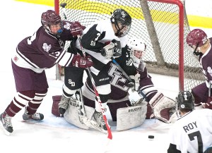 LEWISTON — Shots were at a premium early on when St. Dominic Academy and Edward Little faced off in a Class A North boys’ hockey semifinal Saturday night. Each team scored on its first shot of the game, then the Saints finished strong for a 4-1 victory at Androscoggin Bank Colisee.