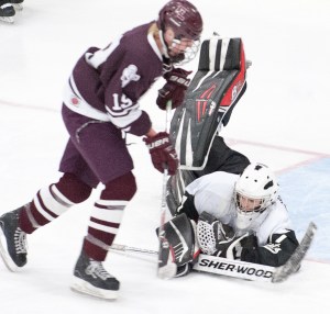 Edward Little had one last opportunity in the closing minutes and called a timeout between power plays with 4:33 to play. A comeback didn’t materialize, however, and the Red Eddies finished with just 13 shots — half of the Saints’ total for the game.