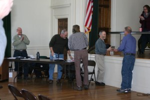 Thirty-five voters, including five selectmen, agreed to raise and appropriate $577,725, about $50,000 less than the 2015 budget. They also approved a total of $383,749 to be spent from other income categories, of which $250,000 will come from surplus to offset the burden on taxpayers. Another source includes state funding for road repaving.