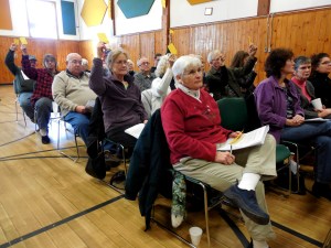 None of about 75 residents in attendance at the Agnes Gray School gymnasium voted to approve Article 11, the Yard Sale Ordinance.