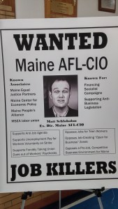 At a town hall meeting in Bath on Thursday night, the governor had unveiled three “wanted” posters targeting Chin, Matt Schlobohm of the Maine AFL-CIO and Nick Bennett of the Natural Resources Council of Maine, poking at all three for being “job killers.”