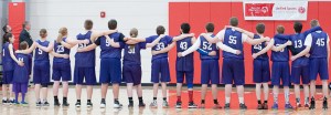 Lisbon’s brand-new gym held a standing-room only crowd that was raucous from start to finish. The cheers began before the opening tip, when Hampden’s Zach Ewing sang the national anthem. he had some support, from Alex Ross, then Hewey, then the whole crowd — which was encouraged to sing along by Ross.