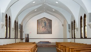 While many stained-glass windows were removed from the church, fortunately some, including the rose window over the front entrance in the reception hall and others in the chapel, remain. Many of them have been expertly repaired by stained-glass artist Jim Nutting, owner of Maine Art Glass Studio in Lisbon Falls.