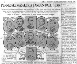 Glatz has been able to trace individual Hebron Academy base ball players who went off to fight in the war, survived, and came back to Maine to play, and frankly promote, the game again. He demonstrated that an 11-member post-war town team from Norway named the Pennesseewassees included seven Hebron base ball alumni, and four were Civil War veterans. Three players were both.