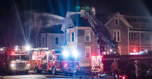 “I saw a few flames in the top-story window, but that was about all,” said David Bartlett, who lives next door to the three-story apartment house. “The firefighters got it down real quick.”