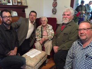 Town Manager Kurt Schaub, Board of Selectmen Chairman Kurt Youland and Selectmen Denis Richardson, Angelo Terreri and Kevin Nichols presented Leavitt with a bouquet of flowers and a replica of the original 1909 cane.