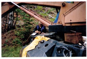 “This piece of equipment was my nemesis,” Perham said. “Among other things, I used to do a lot of core drilling. This (photo) is up to Rangeley, and when I go to the great beyond, I’m taking a picture of this thing with me in my pocket. If I go up, I’m going to throw it off a cloud, and if I go down, I’m going to tell the devil, ‘I’m here, and this thing better be right behind me.’ That rig had a four-cylinder Wisconsin engine on it, that must have been a hybrid of a mule, because it pretty near broke my arm more times to start it … I’m quite sure Noah had one of these on the ark for ballast.”