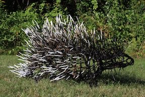 Animals include a deer and wolf. The porcupine that was stolen is nearly 3 feet long and is made from steel and repurposed nails.